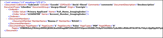- DocumentName in XML is mapped to field Document_Name in eSign Imaging System.