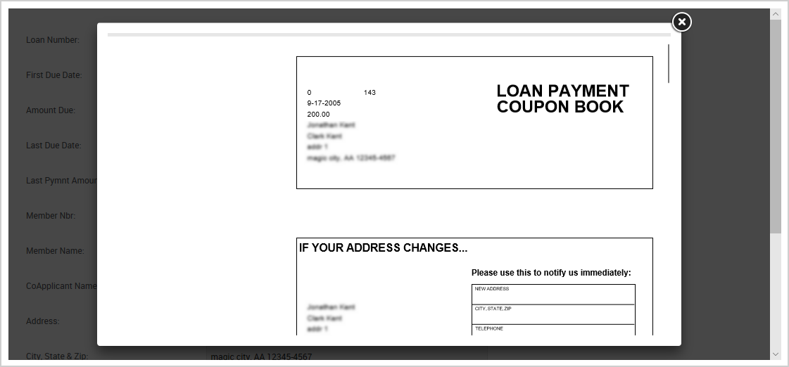 - Click Process Loan Coupons. The Loan Payment Coupon Book is displayed.