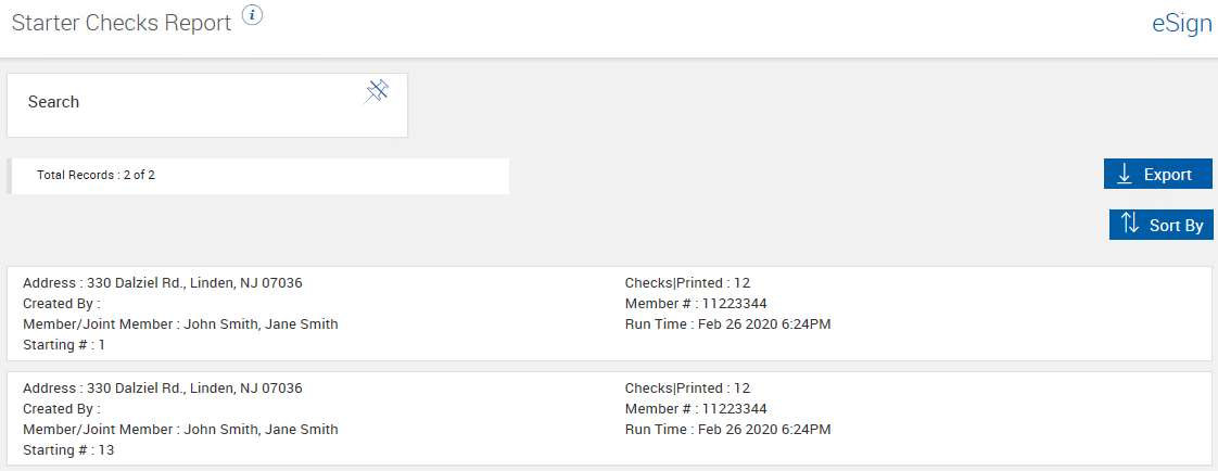 Created By | Click the field to search for Starter Checks created by one or more specific users. Choose from the dropdown menu. Leave the field blank to search for documents owned by all of the users whose reports you can access. |
