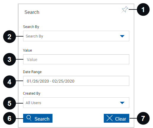 Search By | Select a search criteria from the Search By dropdown. This field is required. |